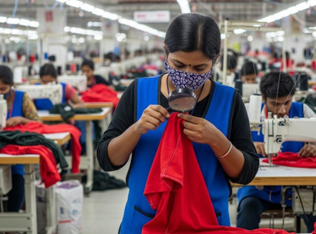 - Quality control personnel inspect major operations during stitching.